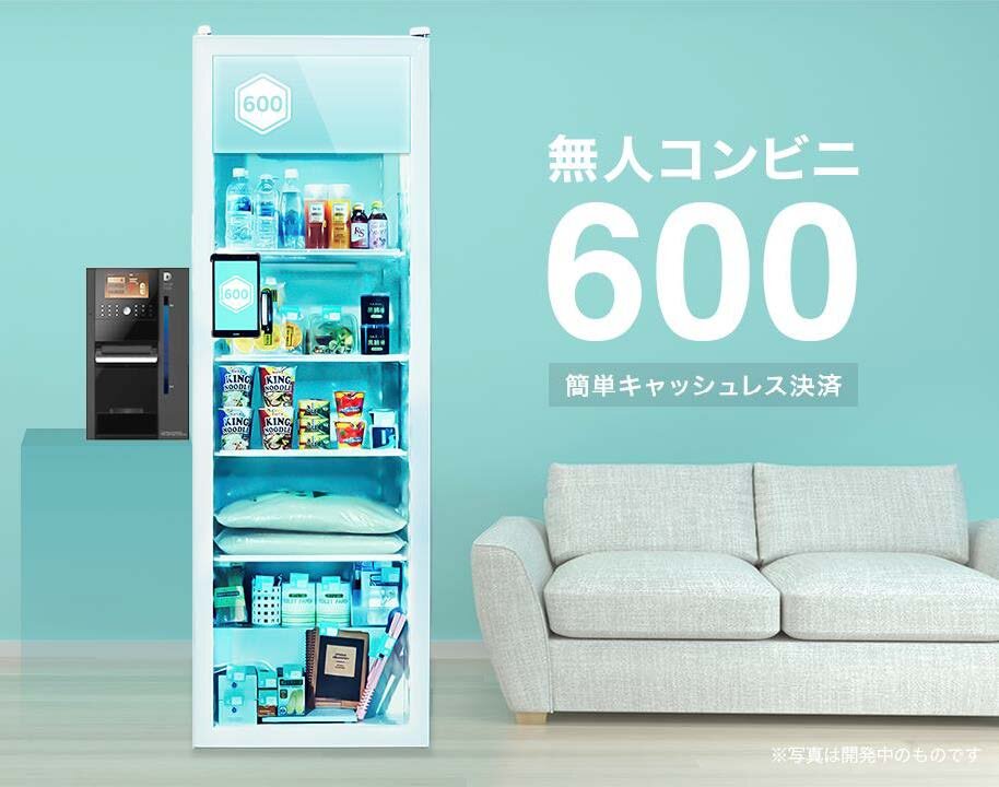 600社は、独自に開発した自動販売機(以下、「自販機」/写真参照)・無人コンビニ「600」を運営するスタートアップ企業です。