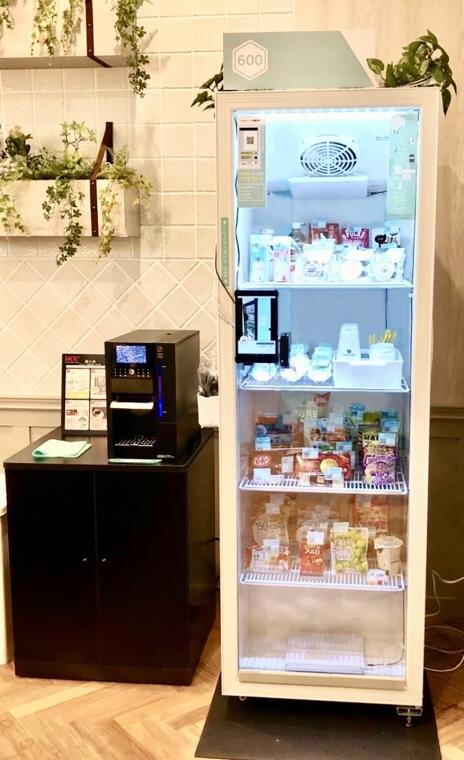 RFID**タグを利用した商品管理を行っており、利用者は専用端末にクレジットカードを通し好きな商品を取り出すだけで自動的にクレジット決済され、キャッシュレスで商品を購入することができます。また、無料通話アプリ「LINE@」等のチャットツールを通じ、希望する商品を600社に直接リクエストすることも可能です。商品の売れ行きなど利用者の動向が定期的にレポーティングされることで、設置者はデータに基づき品揃えを改善することができます。