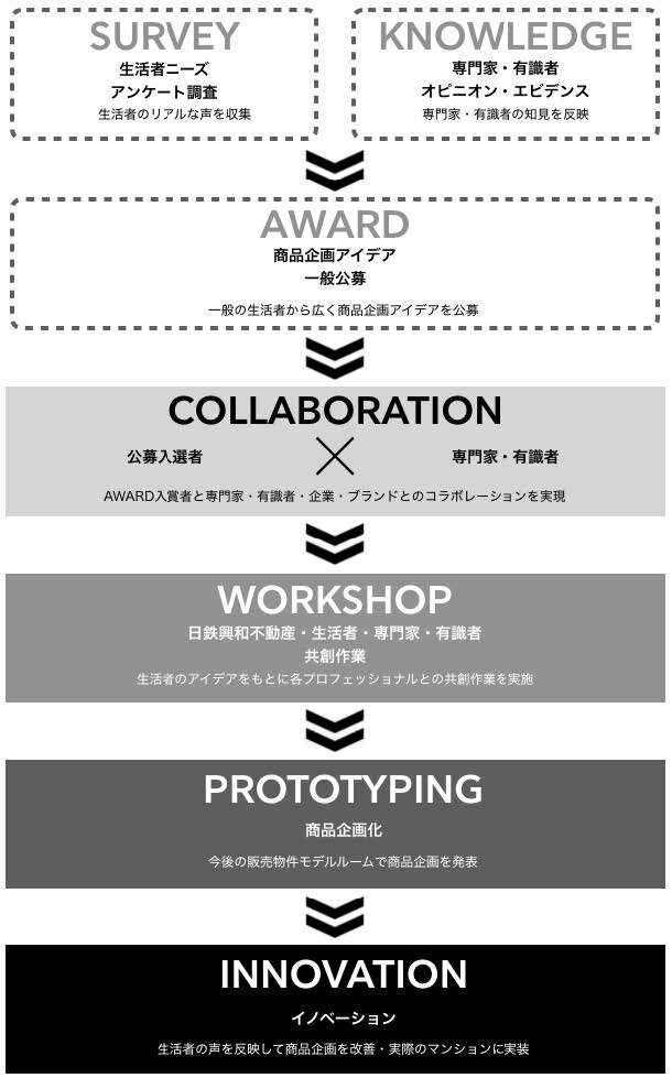 一般の主婦から学生、不動産・建築業界に従事するプロフェッショナルまで広くたくさんの生活者のアイデアを公募し、入選者と有名デザイナー・住宅関連メーカー・インテリアショップなどとのコラボレーションを実現、現代の生活を観察し、未来の暮らしを予想した"ドリームプラン"を共創していきます。