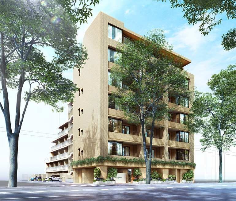ケヤキ並木沿いに誕生する本物件。調布の街が持つ緑との繋がりが生まれ、⼼地よさ、穏やかさ、安⼼感が溢れるような物件を目指し、コンパクトな敷地ながら、50種類以上の植物を計画するほか、外観にはタイルや⼿作業の風合いが感じられる塗料を使用。さらに専有部分には天然ケヤキの挽板フローリングをセレクトメニューとして採用するなど、随所で変化に富む本物の木々を感じることが出来る、豊かで安らぎのある空間を演出しています。
