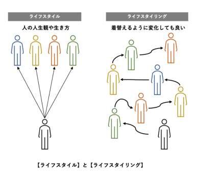 これからの時代のライフスタイルは、時代や価値観の変化に合わせて、服を着替えるようにもっと気軽に多様なものへと変化させても良いのでは?という考え方で、進行形の「ライフスタイリング」という新しい発想を提案します。