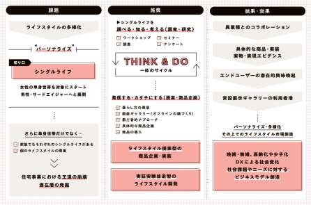 単身世帯の社会ニーズに向き合うため、定点調査や多世代の志向調査を実施。住宅販売を最終目的にはせず、広い範囲を調査対象としており、商品企画に直結するレポートだけではないことも特徴です。