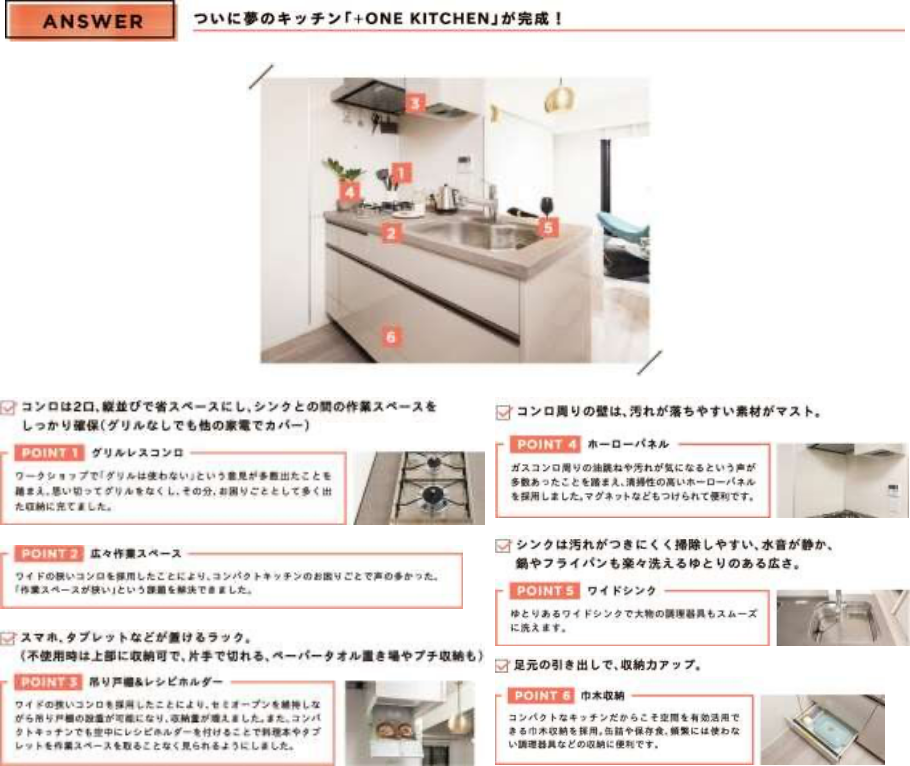 料理に対して意識の高い『オレンジページ』の会員に、オンラインコミュニティサイト「オレンジページサロンWEB」でのコメント投稿やワークショップでのディスカッションに参加いただく形でご協力いただくことで、夢のキッチン「+ONEKITCHEN」を実現しました。