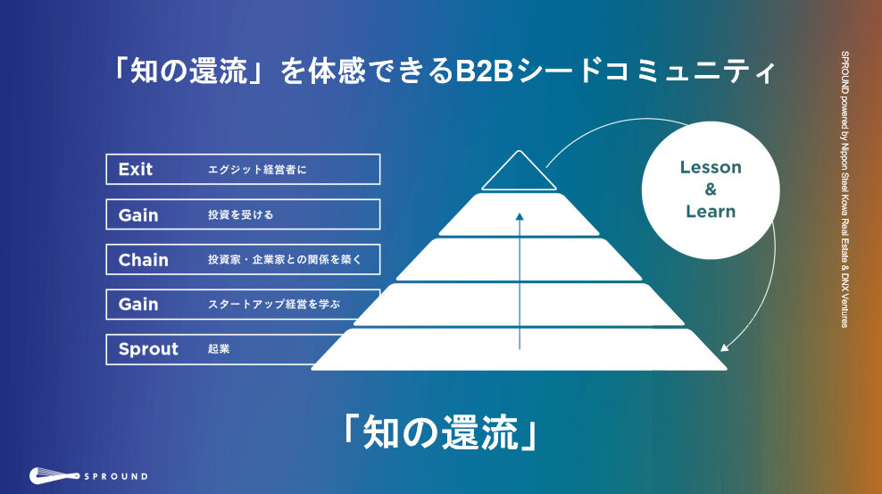 彼らの成長を後押しし、またいつかSPROUNDに帰って次のアントレプレナーに自身の経験を還元する、SPROUNDはそうした企業成長のノウハウが循環する「知の還流」を生み出すことを目指します。