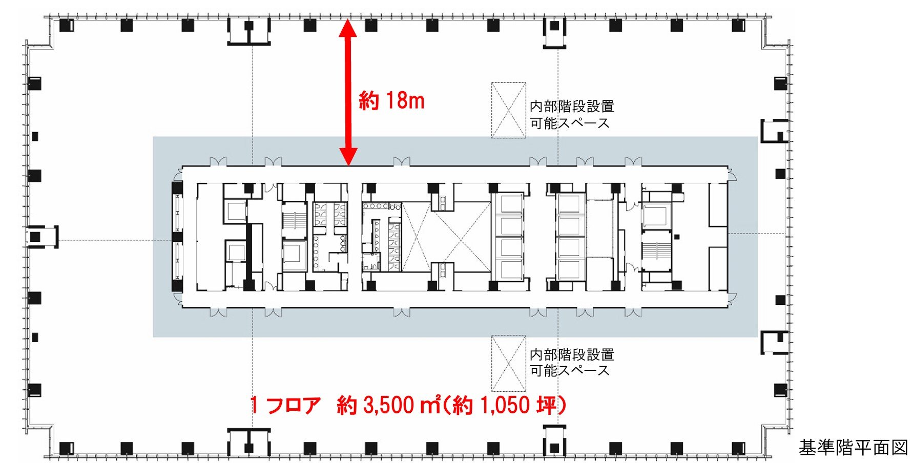 | 基準階貸室面積 | 約 3,500 ㎡(約 1,050 坪) |