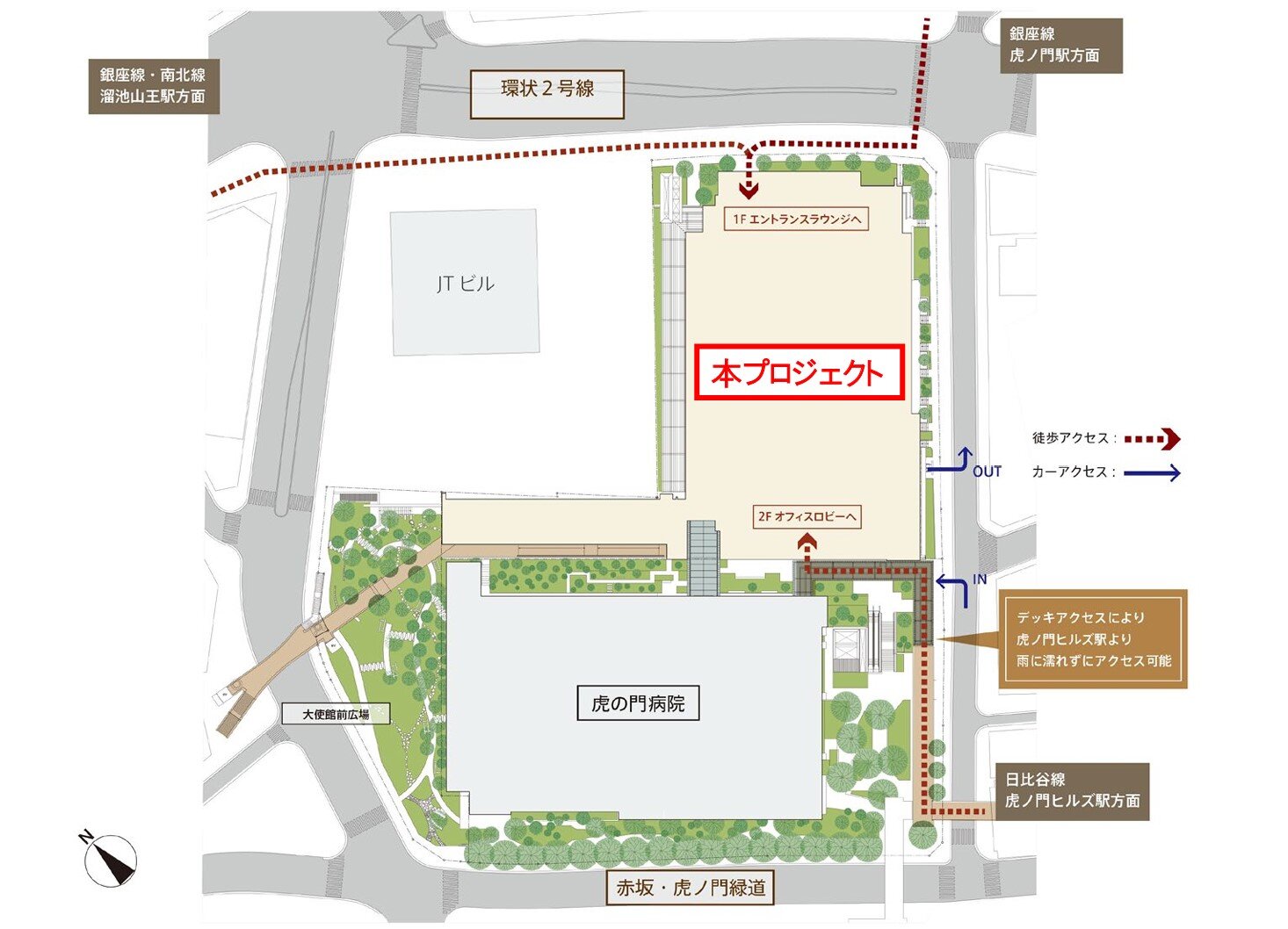 ※1:所在地:東京都⻁ノ⾨⼆丁⽬105番。なお、⻁の⾨病院は同⼀街区内で本プロジェクトの隣接地に整備された新病院棟に移転済み(2019年5⽉開院)であり、2020年8⽉に旧病院建物の解体⼯事が完了しています。