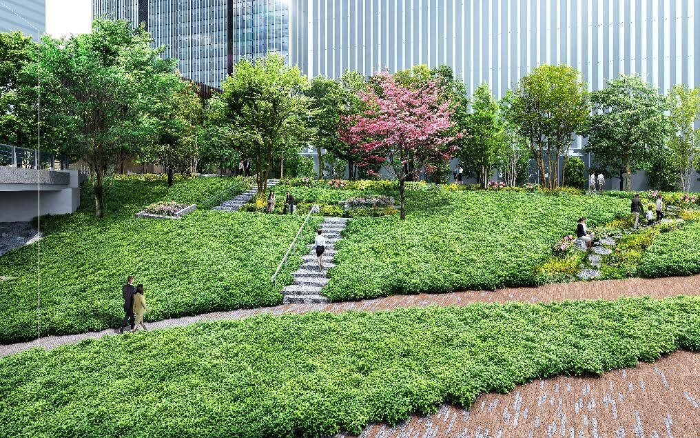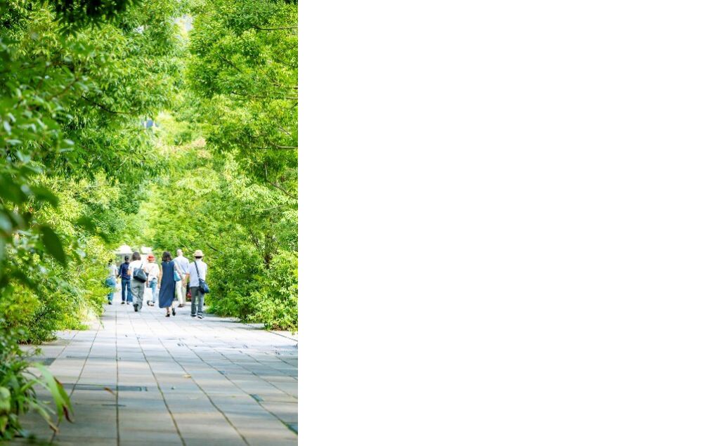 外構部には、地形の起伏を生かし四季の変化に富んだ緑地や、六本木通りから新虎通りを結ぶ東西約850mにわたる「赤坂・虎ノ門緑道」※6と連なる並木道を整備し、敷地全体で約9,000㎡の緑化を行います。オフィスワーカー・地域住民・来街者などすべての方がまち歩きを楽しみ、憩えるまちづくりを推進します。