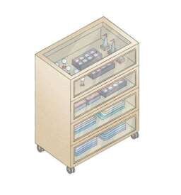 ⑤小物を収納するための引き出し付き収納、かつ何が収納してあるか一目瞭然の状態がベスト