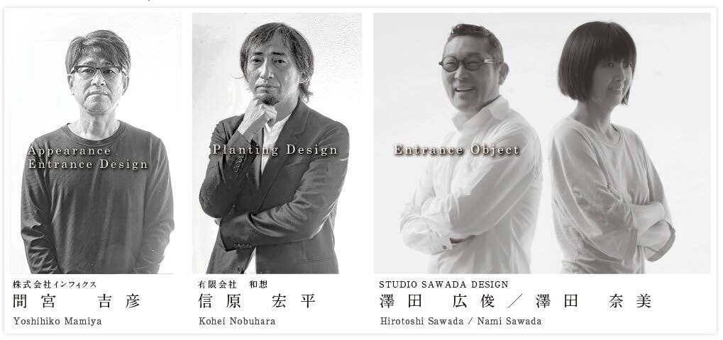 マンションのデザインにおいては、この街の景観に相応しい風景とすべく、外観・エントランスデザインを「infix」、植栽デザインを「WA-SOdesign」、エントランスオブジェを「STUDIOSAWADADESIGN」の4人の匠の共演によって実現します。