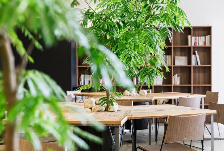 COMORE BIZ(コモレビズ)は、ワークプレース(職場環境)をライトプレース(人間に最適な自然環境)へ近づ けるソリューションです。科学的エビデンスに基づいて設計したバイオフィリックデザインを用いた空間は、ストレ ス軽減効果が期待でき、木漏れ日あふれるような心地よさをつくり出します。実証実験結果と独自の植物データベー スに基づき、ストレスを軽減させる緑の配置と空間設計、メンテナンスなどをトータルに提供しています。