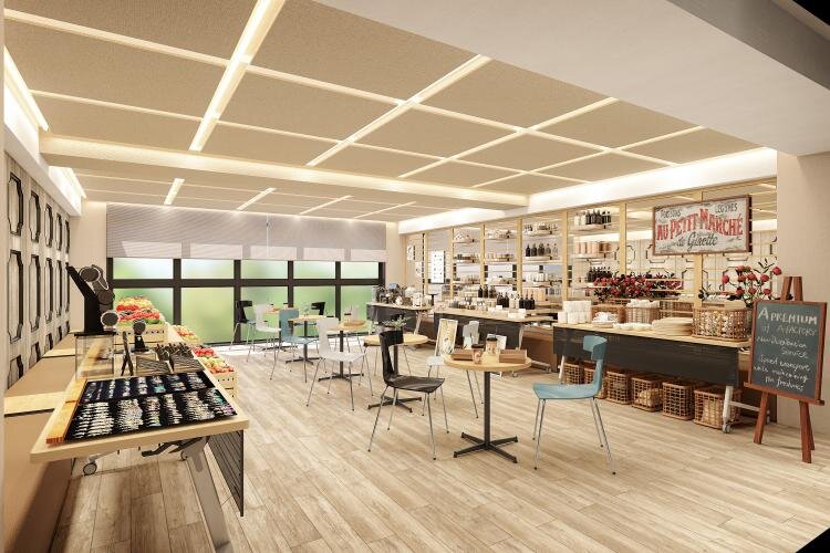 読書や勉強などに活用できるラウンジスペースを配置。ジュンク堂書店が選書した話題の本や人気雑誌が定期的に追加されるライブラリー機能も持たせています。さらにフリーWi-Fiによるネット環境を完備。コピー機も利用できるほか、テーブルにはデスクライトを設置。テレワークなど、新しいワークスタイルに対応しています。