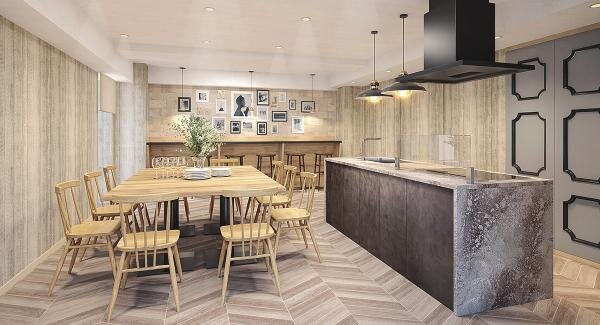 アイランド型キッチンを装備したキッチンスタジオを活用