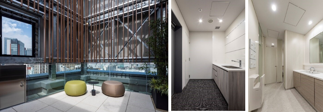 〇屋上庭園は、ワーカーのランチタイムや気分転換にご利用いただける空間としました。