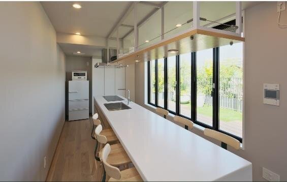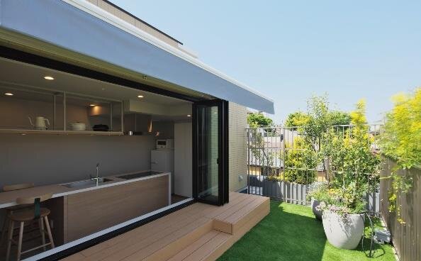 コンパクトマンションの課題である専有部の狭さを解決するために、大きなキッチンとテラスを設えたWi-Fi 完備の「セカンドリビング」を設置しました。住む人が自宅のように家族や友人を招いて、専有部の延長として日常使いができる空間となっています。専有部よりも大きなキッチンや住民間でシェアして利用可能な調理グッズなど、気軽に快適に利用できる仕組みを多数取り入れております。
