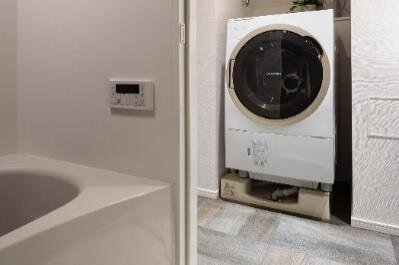④ 外で運動してきてそのまま洗濯、浴室へのラクラク動線を体験可能。南砂町の近隣にあるフィットネスジムや公園でのランニングの後、汗をかいたまま部屋に戻って、浴室や洗濯機までの動線の気軽さを感じてもらうことができます。設置済みのドラム式洗濯機は無料でご利用いただけますので、使ったトレーニングウェアも洗って持ち帰ることができます。