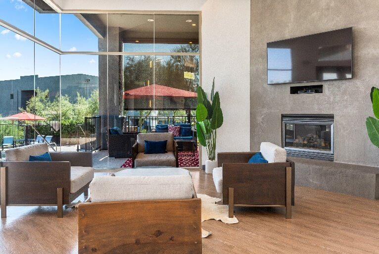 本物件は、半導体関連産業等の集積が進み今後も人口増が見込まれるフェニックス都市圏の、商業・観光の中心で富裕層の避寒地としても知られるスコッツデール市郊外のファウンテンヒルズに位置しております。アリゾナの山々を見晴らす高台に邸宅が並ぶ閑静な住宅地で、昨今のライフスタイルの変化で需要の高い 2 ベッドルーム(平均約 1,040sf/100 ㎡弱)の住戸のみで構成されており、幅広い需要を見込んでおります。