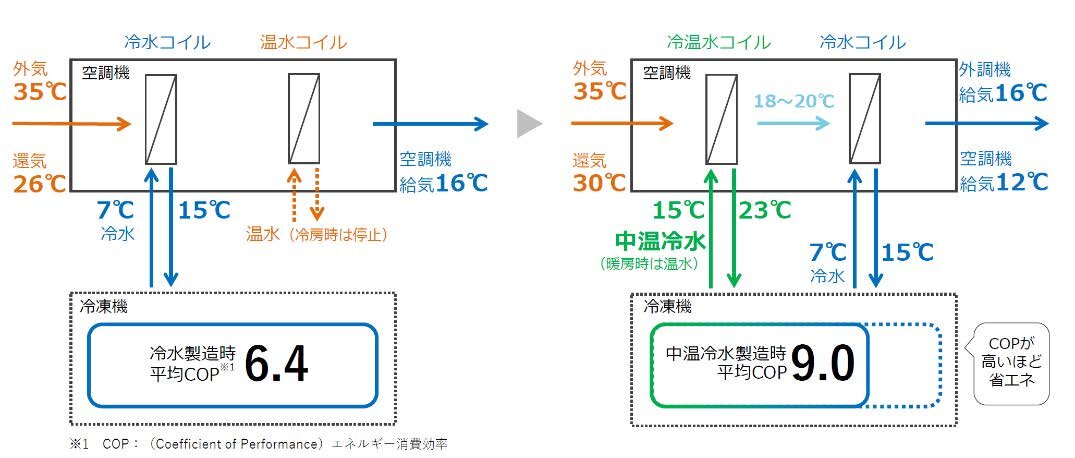 中温冷水利用空調システムの導入により省エネ性向上
