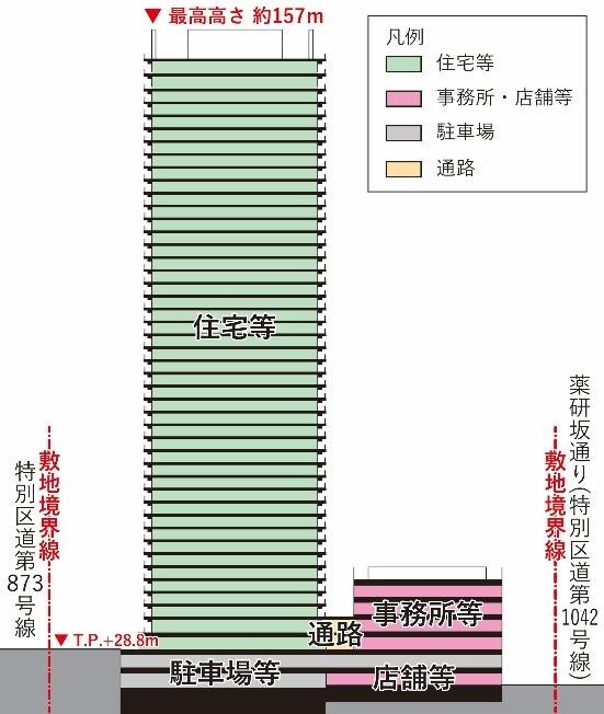 ※地権者住戸含む構造規模:地下1階/地上46階・約157m