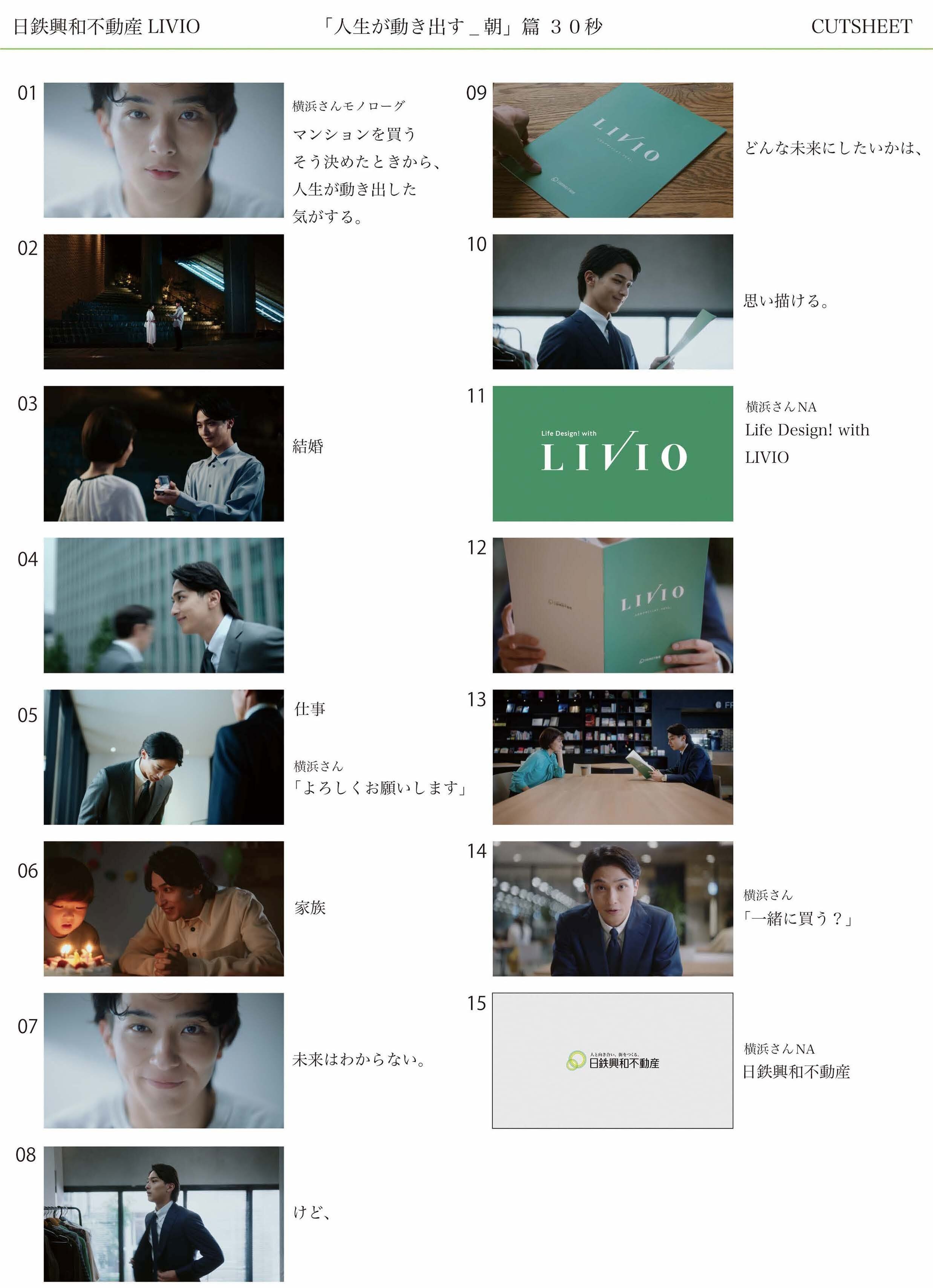 マンションは人生の中でとても大きな買い物であり、人生をデザインする大切な買い物。日鉄興和不動産の『LIVIO(リビオ)』は、お客さまひとりひとりが人生を豊かにデザインしていただくために考え続けるマンションブランドとして、日々進化し続けたい。そんな思いを込めたメッセージです。今回のCMストーリーでは、このメッセージに込めた思いを「マンションを買うと決めた」主人公を通じて表現しています。