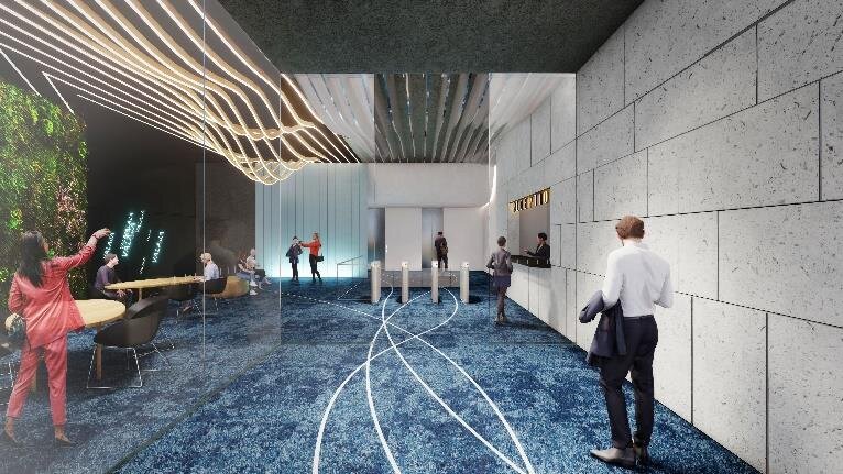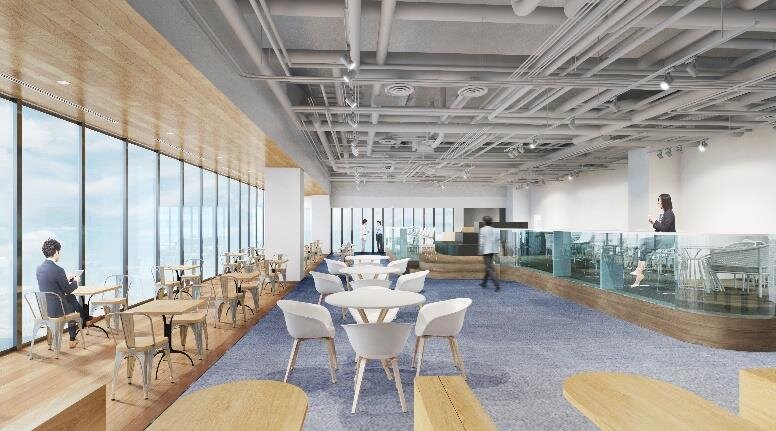 本施設は、年間の一次エネルギー消費を実質的にゼロとする最高ランクの「ZEB認証」および、DBJ Green Building 認証最高位となる「5 スター」の取得を予定しています。屋上に設置する太陽光発電設備約 4MW による再生可能エネルギーの供給や、屋内照明のLED化による省エネ等、環境に配慮したさまざまな取り組みを行います。 また、礼拝所やジェンダーレストイレを設置することでダイバーシティ&インクルージョン(D&I)を推進するとともに、従業員の働きがい向上に資するべく、売店・カフェテリアスペース、ラウンジ、デッキテラス等、共用部の更なる充実を図ります。新型コロナウイルス感染症対策としては、タッチレスエレベーター等の最新技術も導入するなど、従業員の皆さまにより快適で安全な環境を提供します。
