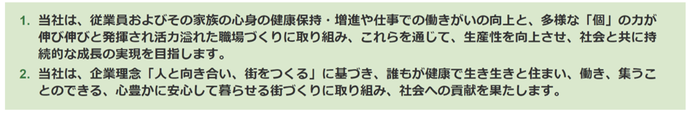 当社は、『日鉄興和不動産の健康経営宣言』を定め、以下の考え方で健康経営に取り組んでいます。