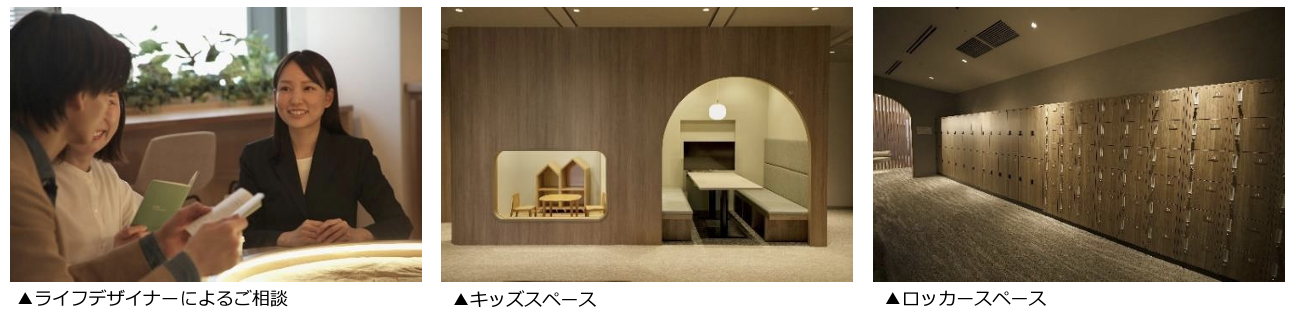 また、本サロンは来て頂くお客さまが存分にリラックスしてご体感、ご相談して頂ける工夫をしています。ご案内が付かないフリーでの見学や、営業をしないライフデザイナーによるサポート、靴や荷物をお預けいただけるロッカースペース、キッズスペース併設のご相談スペースや、手洗い付きのおむつ替えスペースや授乳室、プライバシーに配慮した個室から閉塞感の無いオープンな席のご用意、リラックスをテーマにしたオリジナルの香りや音楽、こだわりのコーヒーのご提供など、ホスピタリティにこだわった空間、サービスを提供いたします。