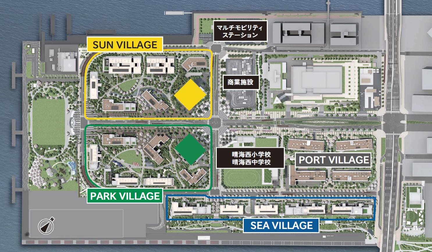| PORT VILLAGE | SEA VILLAGE | SUN VILLAGE | PARK VILLAGE | 商業施設 | |