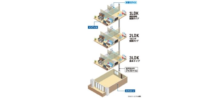 将来への可変性に富んだスケルトン・インフィルの採用