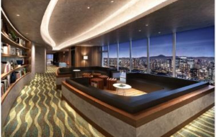 都心の絶景を享受し、寛ぎの空間となることを目指した48階のラウンジ