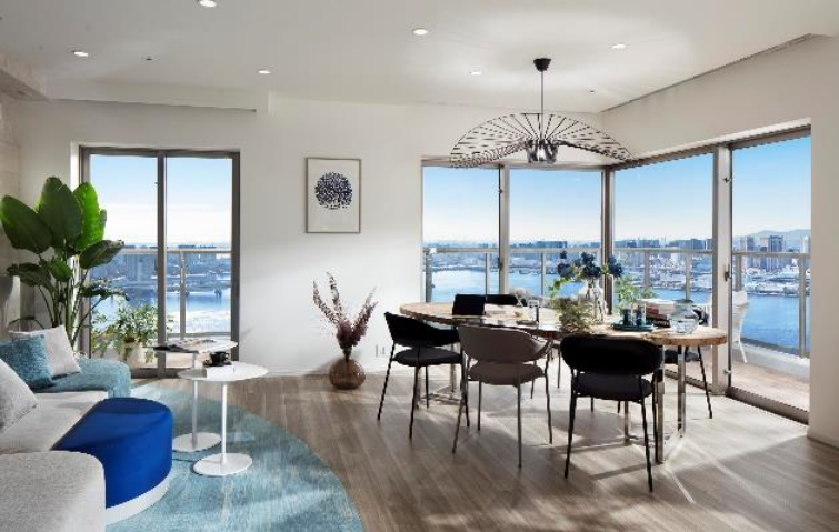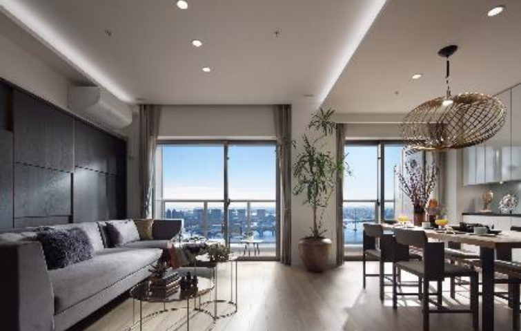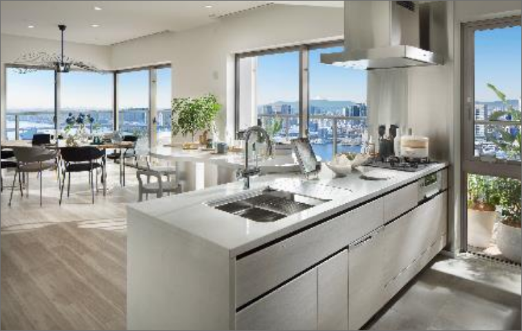 ※4掲載の写真は 6TM77,6TM95タイプを撮影したもので家具・調度品等は販売価格に含まれておりません。また眺望写真は現地 47 階相当(高さ約157m)より南東から南西方向を撮影したものを合成したもので実際とは異なります。眺望は季節・天候・住戸によって異なり、将来にわたって保証されるものではありま せ ん(2023 年1月撮影)。