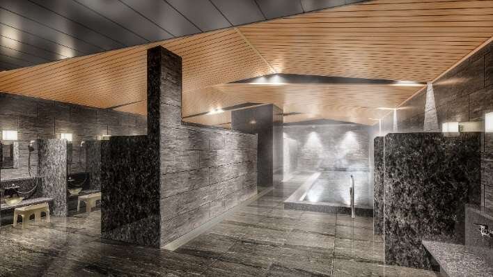 共用部分には賃貸住宅では有数の大きさを誇る約350㎡もの大浴場のほか、多目的に使用できるイベントスペース、キッチン付きのパーティルーム、フィットネスルーム、シアタールームも完備。このほか、ワークスペースや会議室も設置し、居住者の在宅ワークやビジネスを支援します。また多目的に使用できるイベントスペースは、街区外の居住者や地域の人々が利用できる、交流やコミュニティ形成の場としても活用されます。