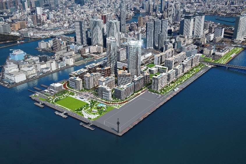 <東京2020オリンピック・パラリンピック選手村として活用後、新築住宅・商業施設として完成する街>