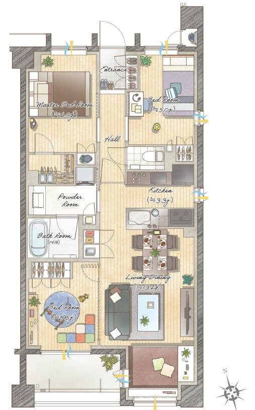 専有面積 44.91 ㎡~95.76 ㎡
