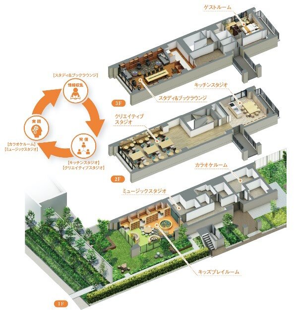 そして337家族の大人も子どもも「学び」のサイクルを通じて生涯学べる共用棟 LLC を企画し、三国ヶ丘の街の価値をより高め、堺市の歴史・文化を継承する役割を担う建物を計画しました。