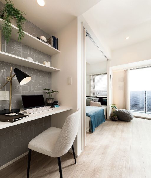 全戸数の60%超を占める1LDKの住戸では、専有面積30.19㎡、37.68㎡の2タイプを、また2LDK専有面積44.02㎡の2人世帯用のプランもご用意しました。コンパクトでありながら、居室の一角にリモートワーク時のデスクとして使えるカウンターを省スペースで実現した「リモデスク」を導入するなど、新しい時代のライフスタイルを提案しています。