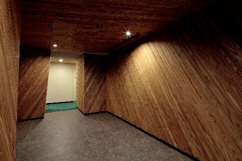 また各住戸のエントランスには釜石市のFSC認証林から伐採した木材で制作したインターホン・室名札パネルを設置しており、居住者の方が帰宅する際に美しい木目が出迎えます。居室内には従来木部が露出していないため、木を身近に感じられるように天然木を使用した棚板をトイレへ設置、一部住戸には壁・天井面に天然木クロスを使用し、本物の木の手触りや香りと、印刷では表せない微妙に異なる柄と色、変化していく色合いをお楽しみいただけます。天然木クロスのほのかな香りは、心身をリラックスさせ快適な空間を創出し、住まわれた方がまるで自然の中で暮らしているような日常生活を実現します。