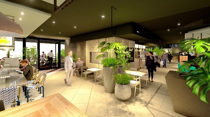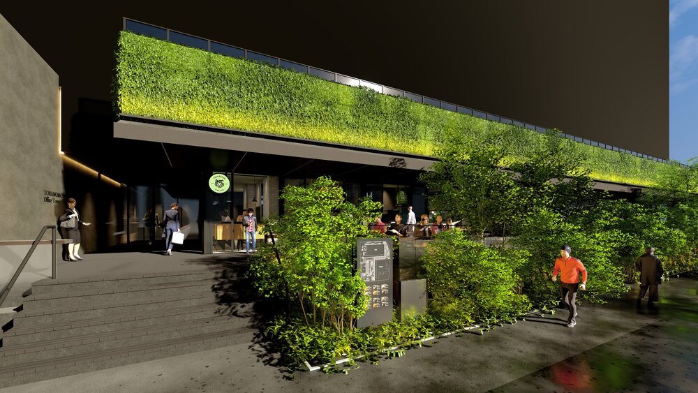 この度開業する『TORANOMON MARCHÉ』は、赤坂・虎ノ門緑道至近の1階オープンテラスに位置しています。終日、さまざまなシーンで「食」を楽しめる場所であり、且つ、忙しいワーカーのタイムパフォーマンスを向上させる、モバイルオーダーや充実したテイクアウトメニューを導入します。