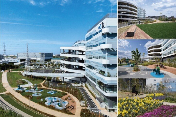 本施設は「周辺に溶け込み地域の誇りとなる物流施設」をコンセプトに、敷地面積の20%以上を緑地として確保した配置計画を採用しています。地域の在来種による緑の連続性を確保することで生物多様性に配慮し、地域イベントの開催や季節ごとの彩を楽しめる広場を設けるなど、質の高い緑地環境を整備しています。また、国内初の「高台まちづくりを盛り込んだ官民連携の都市計画の決定」※1により、暮らしと防災の両面で地域のウェルビーイング向上に貢献している東京都内で最大規模の物流施設です。