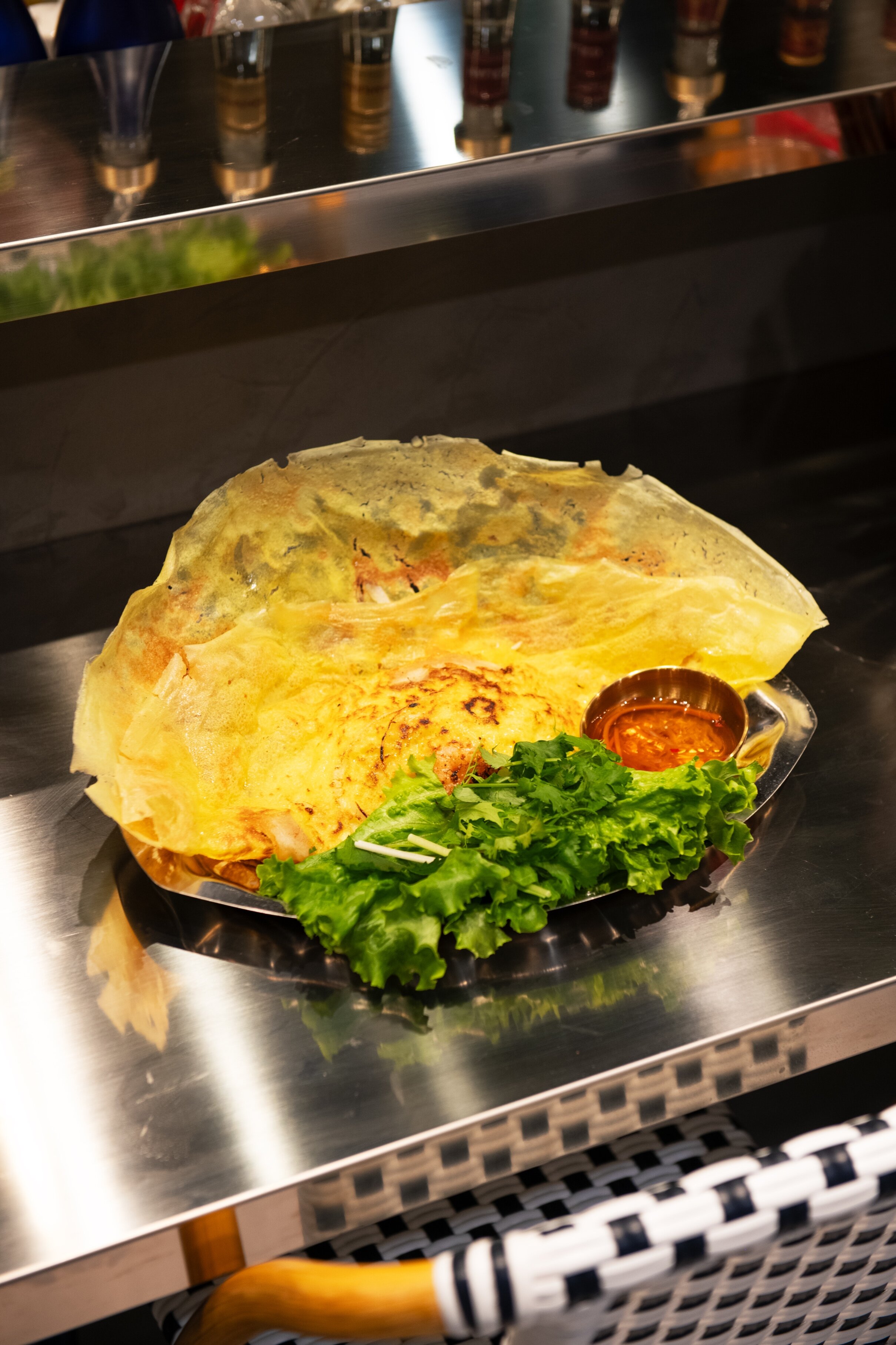 おすすめメニュー:もやしと海老と豚肉入りのバインセオ 1,518円(税込)・