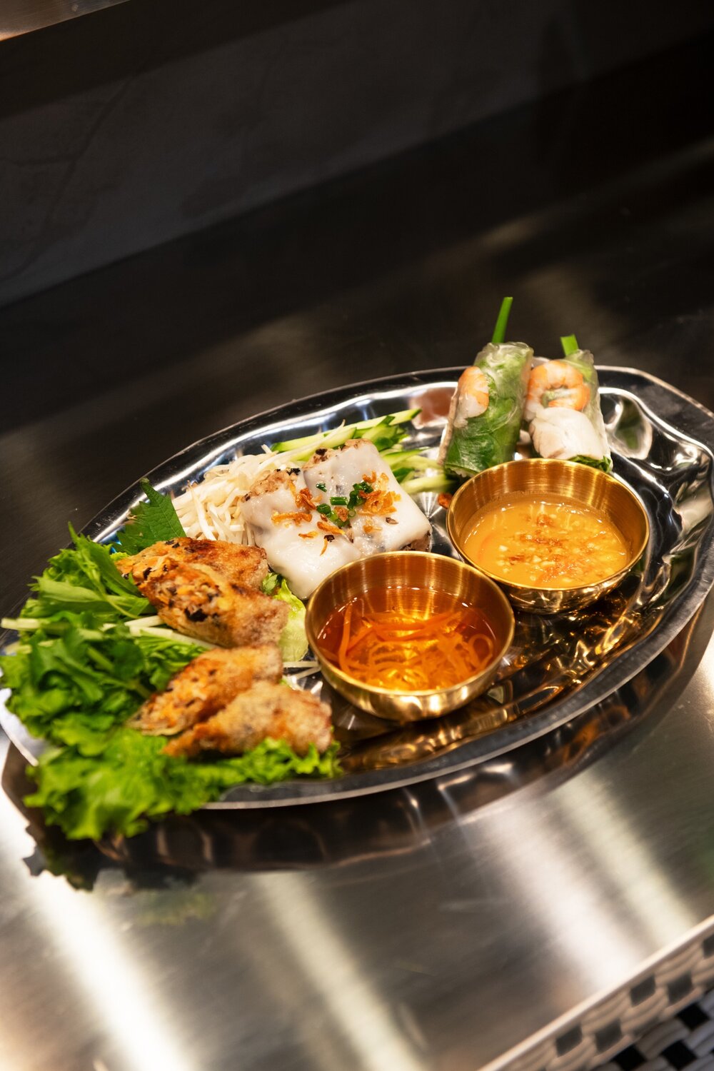 ベトナムの名物米粉料理「バインセオ」。薄焼きでパリパリ、中はもちっとした生地と具材を葉野菜で包み、甘酸っぱいタレをつけてパク!野菜も沢山摂ることができるヘルシーな伝統料理を、本格フォーや屋台飯と一緒に。ベトナムビールやハイボール、サワーなども取り揃え、本場の屋台に来たような気分を味わえます。