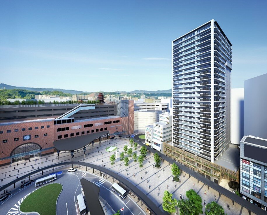 「プレミストタワー大分」は、3本(日豊本線、久大本線、豊肥本線)の在来線が乗り入れるJR「大分駅」北口から徒歩2分の「大分駅前再開発プロジェクト」の区域内で開発されるタワーマンションです。