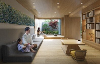 日常から隔離された落ち着きのある空間として計画し、大きな開口の窓から四季を感じる坪庭を眺められる、風情あるしつらえとしています。※サウス・ノース居住者とも相互利用可能。