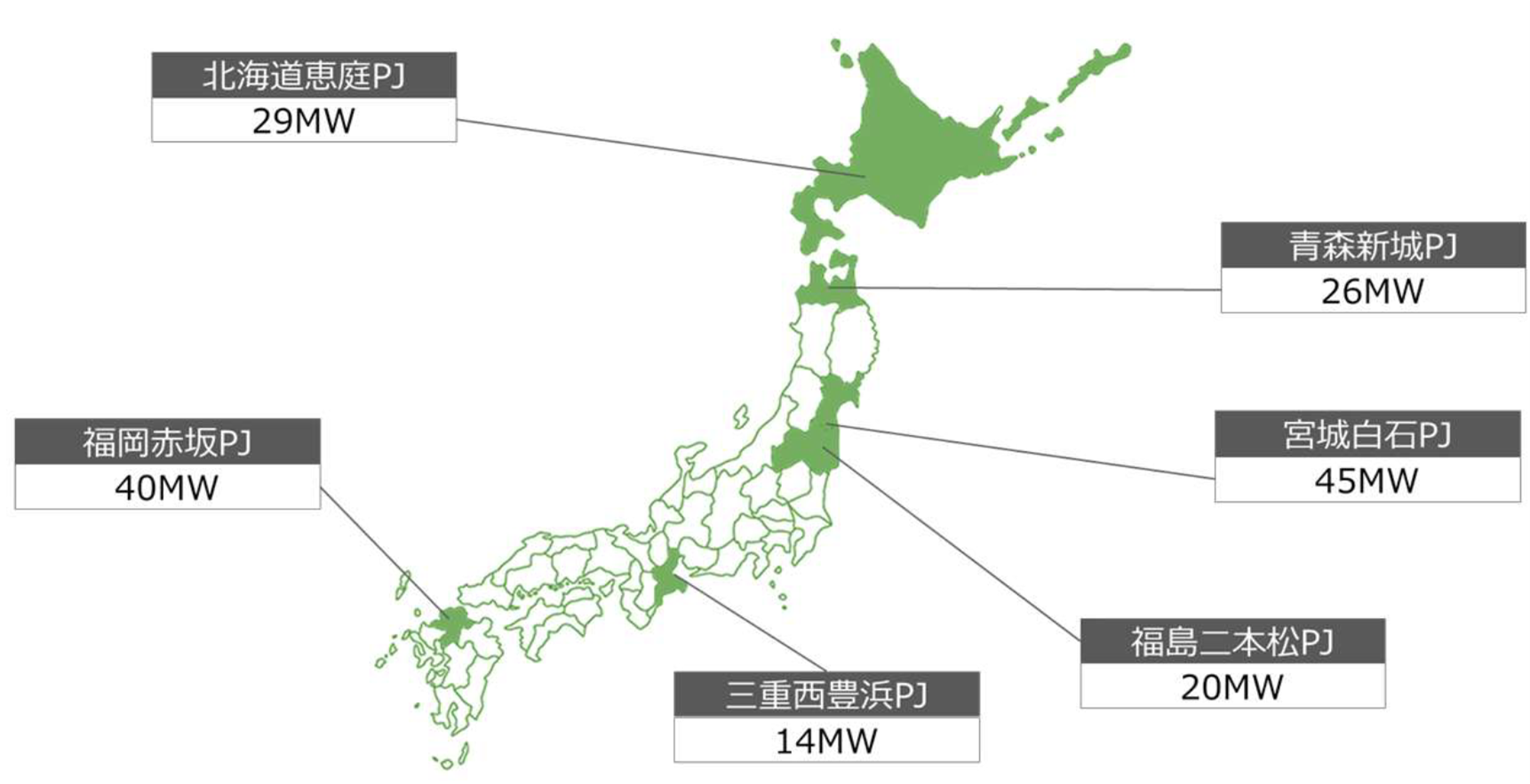 | 物件名 | 福島二本松PJ | 福岡赤坂PJ | 三重西豊浜PJ | 北海道恵庭PJ | 宮城白石PJ | 青森新城PJ | |