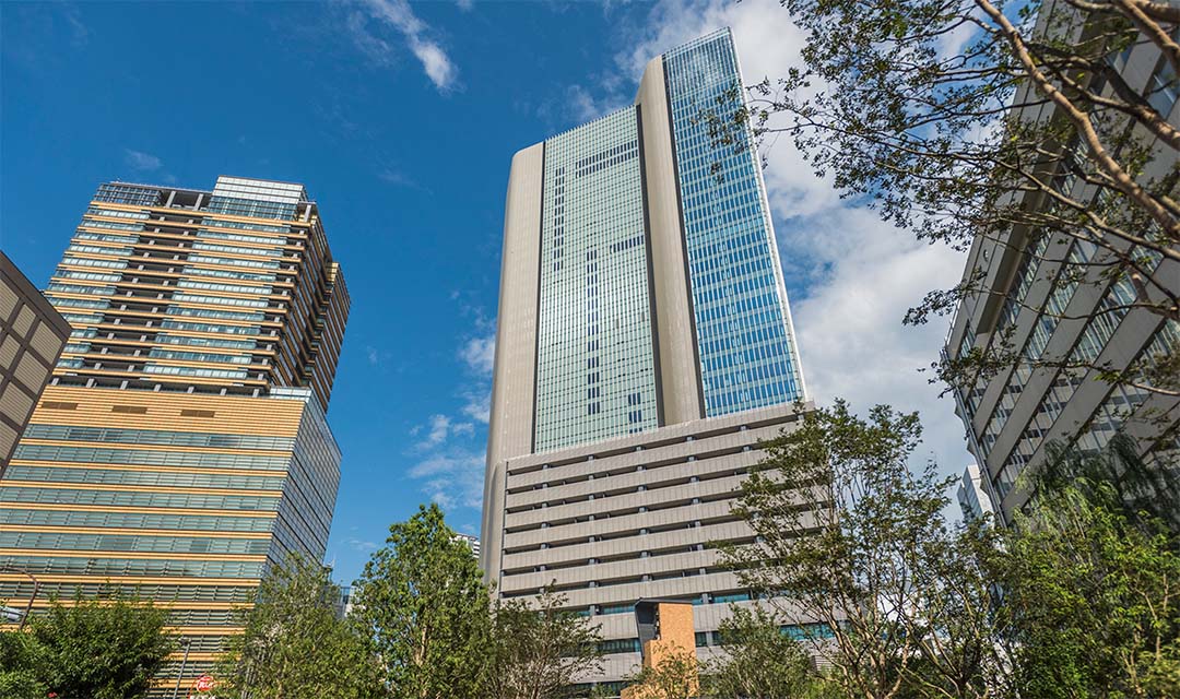With an excellent location only a six-minute walk from JR Hamamatsucho Station, this environmentally-friendly office building has district heating and cooling, solar power generation, and more.