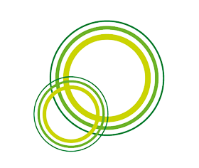 The triple ripple-effect rings represent "people, neighborhoods, and nature," and the overlapping large and small circles express how they connect and resonate with each other.