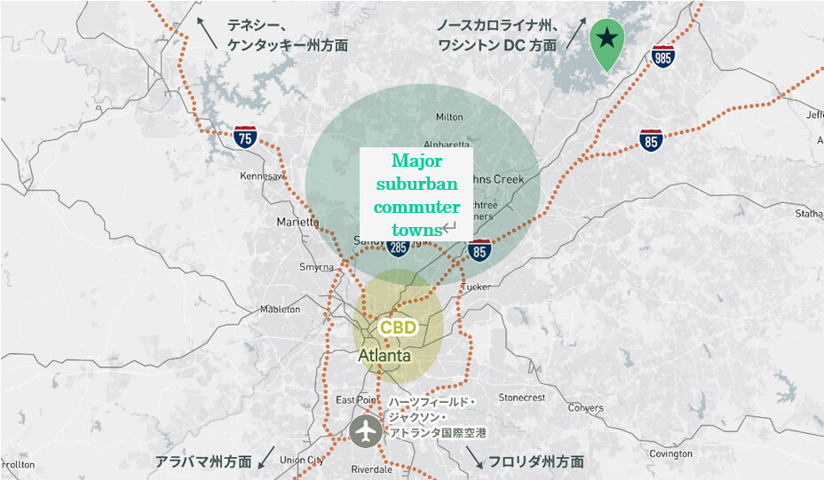 The Atlanta metropolitan area in Georgia is the largest economic and logistics hub in the southeastern U.S., with a population of approximately six million (the sixth highest in the United States). Home to Hartsfield-Jackson Atlanta International Airport, which ranks first in the world in aircraft arrivals and departures, as well as a concentration of major transportation infrastructure such as railways and highways, the region has grown into a logistics hub boasting the fourth-largest market size in the country. The site is located in close proximity to Interstate Highways I-85 and I-985, which serve as key transportation infrastructure, and the area is expected to see growing demand for logistics facilities for urban deliveries and long-distance domestic transportation.